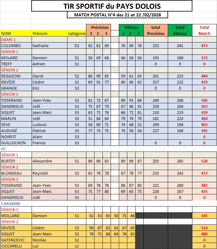 Les critérium 25m vont débuter après ce 4ème et dernier e-match de la saison qui s’est déroulé pendant le week-end du 21 & 22 février 2026.